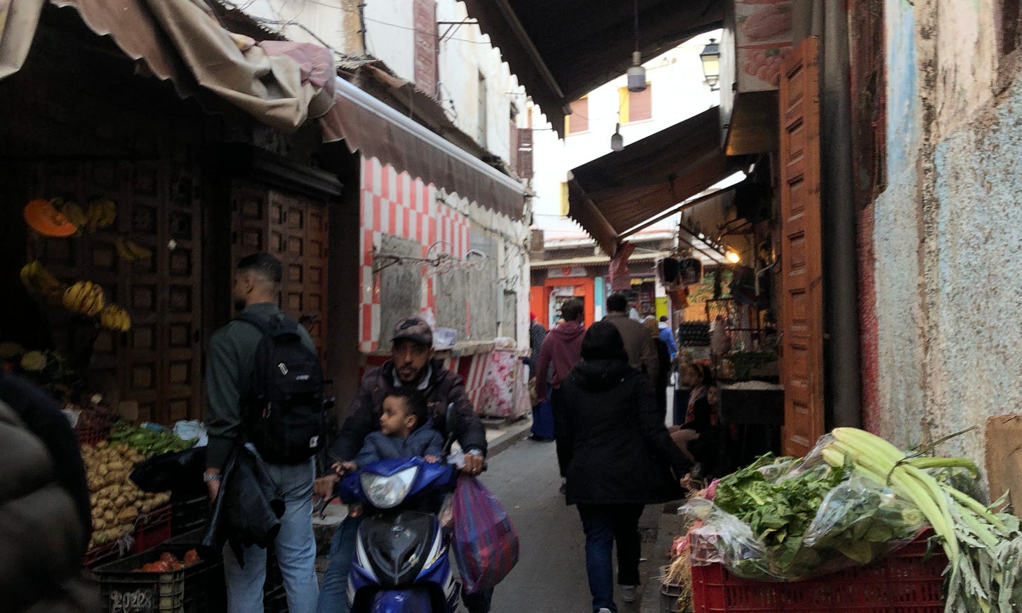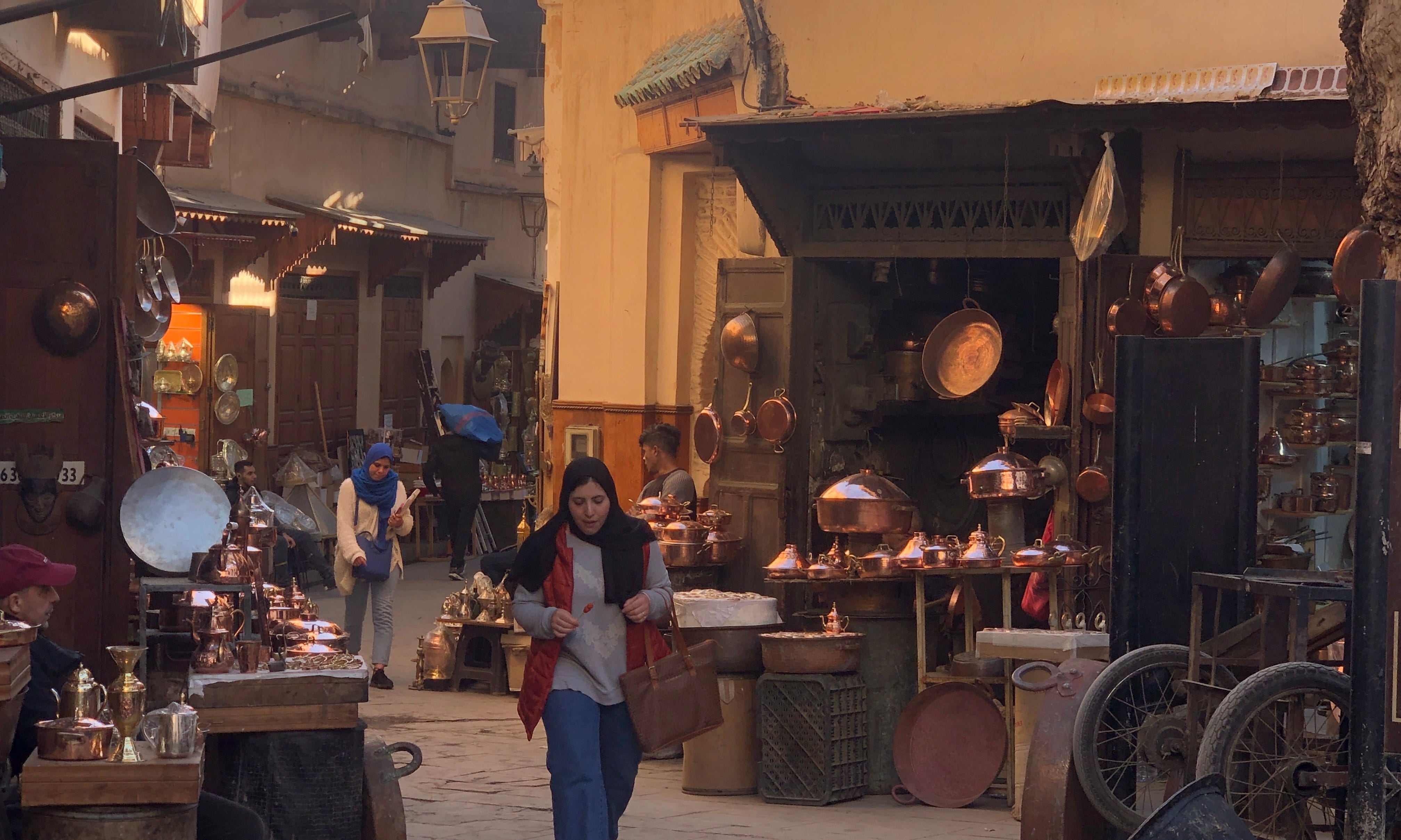 モロッコの大きな街には、そのほとんどで、メディナと呼ばれる壁に囲まれた迷路のような旧市街がある。このメディナの雰囲気も街によってかなり変わる。マラケシュは観光客向けの土産物がひしめき合いつつ、奥に進むにつれ地元の人が買うようなパン屋や布屋などを見かける。狭い道に沢山の人が歩いているところを、さらにバイクに乗った住民がお構いなしに走ってくる。ちょっと気を抜くと轢かれそうになるのだけど、バイクに乗る方も避ける方もプロ。そんな人だかりの直前でアクセルを踏むなんて!というところでバイクは加速するのに、どうにかやり過ごされていく。