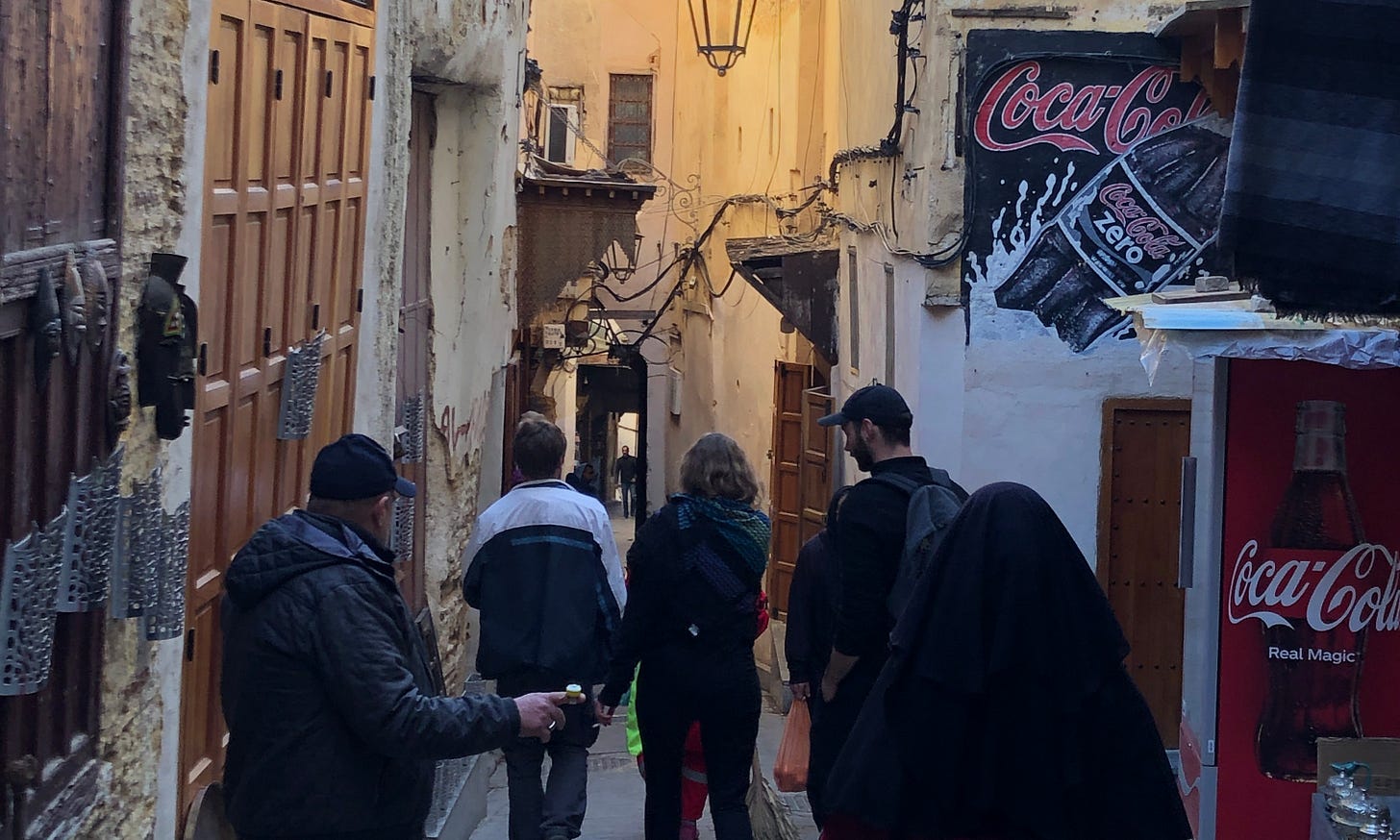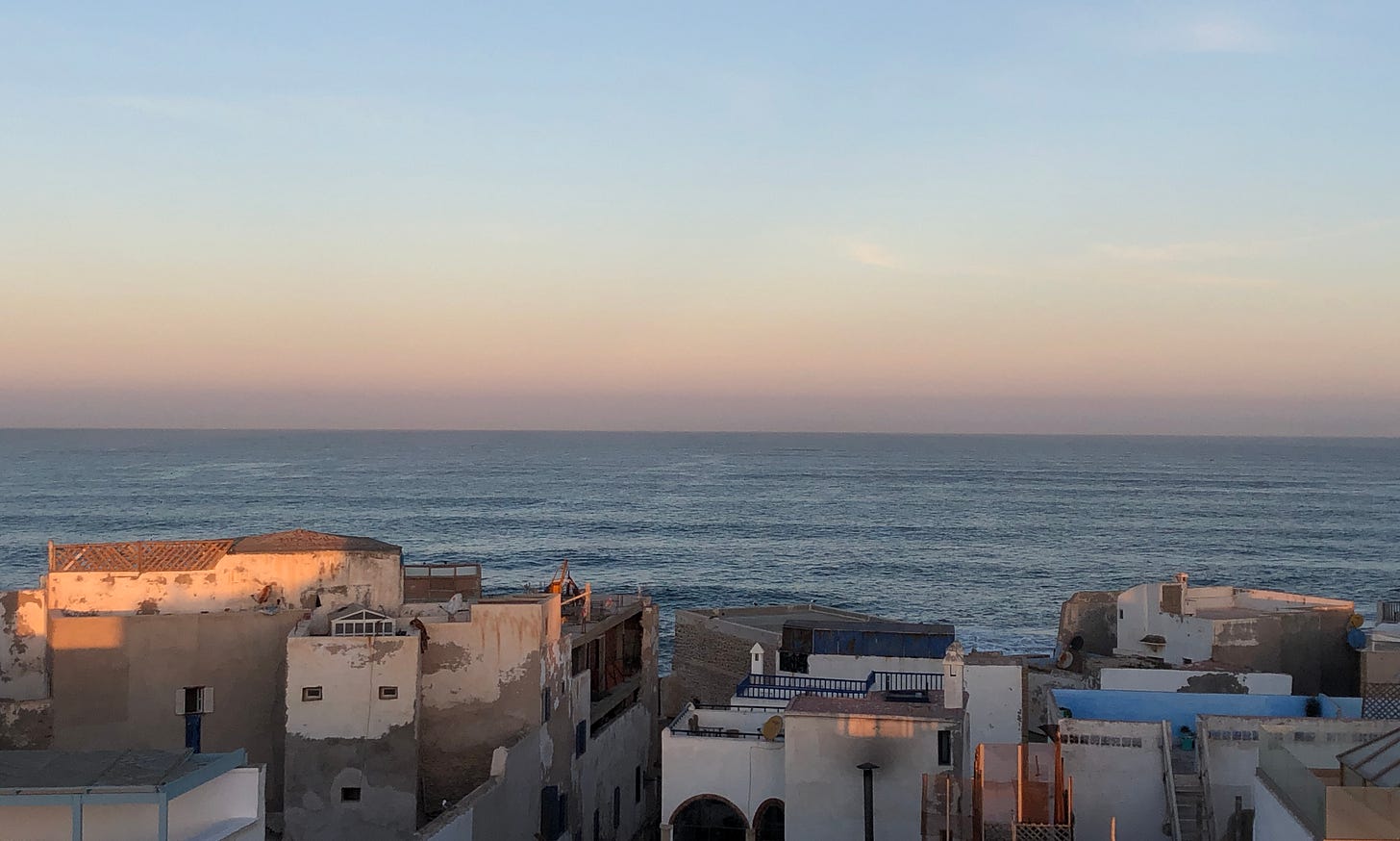 ラバトのメディナは落ち着いていて、広い日本のアーケードのような通りもあり、細い路地に入っても穏やか。土産物屋より地元の人が普段使うような日用品の店、服の店なんかが多い。カサブランカのメディナはもう少しカオティックで貧しい雰囲気があった。フェズのメディナは全体が緩やかな丘になっているのか、高低差があり、街並みが美しい。モロッコの人々もフェズのメディナが一番美しいと言うことが多い。エッサウィラはかなり観光地化しているのだが、泊まった宿の屋上からメディナと大西洋が見渡せて、美しかった。エッサウィラはかつてポルトガルの要塞拠点として支配されていた歴史もあり、海を見渡せる要塞が残っていて、そこから大西洋に落ちる夕陽を見ることもできる。