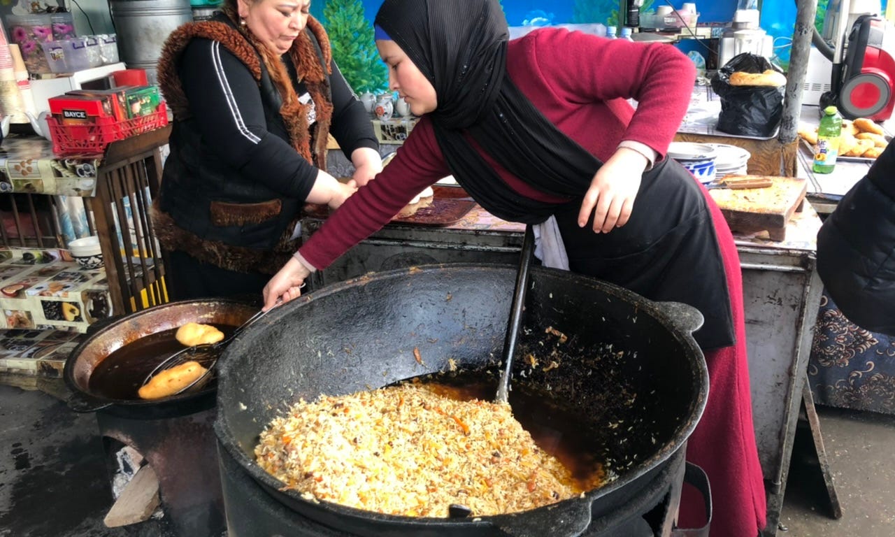 日本はいまやいろんな国の食べ物が日常的に食べられるので、私はこれまで特に疑問を抱くこともなく料理を点で見てきたところがあった。しかしユーラシアを歩き、ここ中央アジアに来てさらに、料理というのがいかに線で繋がったものかを感じさせられる。一方で気候や風土が違うから料理の形は変わってくるし、たとえば中央アジアもスパイスは豊富なのにインドのように味付けが辛くないのは、砂漠にあって水の貴重な土地だから、身体の水分を失わないためというのもあるのではないか、とか、想像しながら食べるのも楽しい。